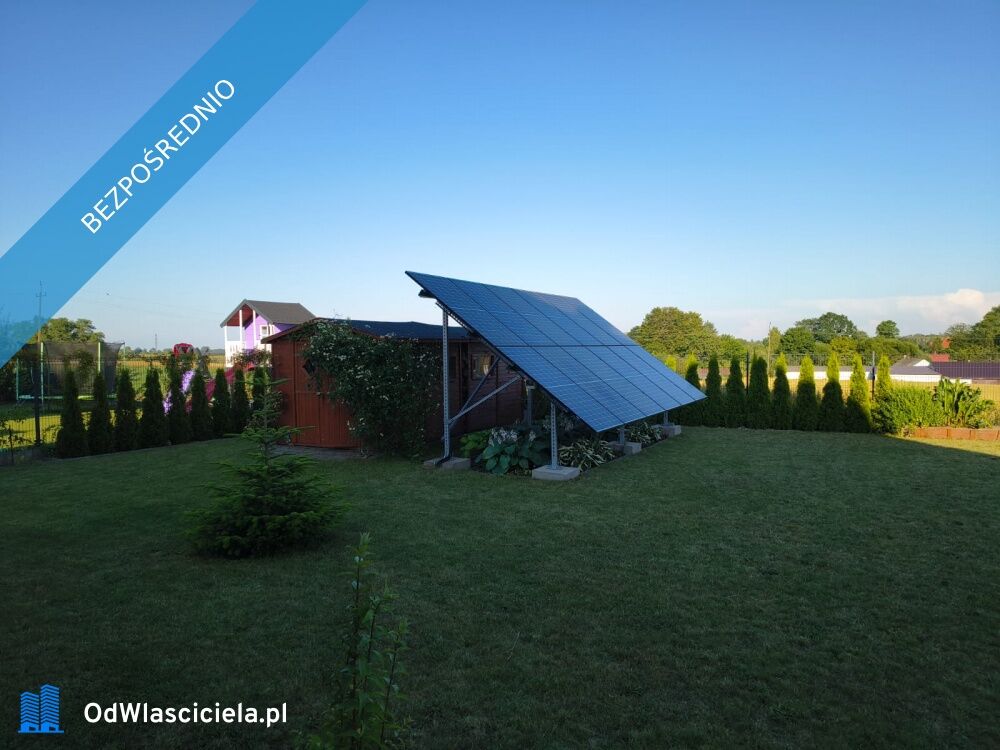 Działka o powierzchni 878 m2 ogrodzona oraz zagospodarowana poprzez zarówno kostkę betonową przed domem jak i tereny wypoczynkowe (taras, duży trawnik) oraz drzewa i rośliny ozdobne. Z tyłu działki są dwa domki narzędziowe jako dodatkowe miejsce do przechowywania oraz instalacja fotowoltaiczna.